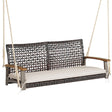 2-Person Rattan Hanging Porch Swing Chair-Off White