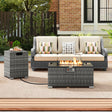2-Piece Outdoor Rattan Fire Table Set 32 Inch Rectangle Gas Firepit with Tank Cover-Gray - Gray is backordered and will ship as soon as it is back in stock.