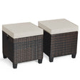 2 Pieces Patio Rattan Ottoman Set with Removable Cushions-Beige