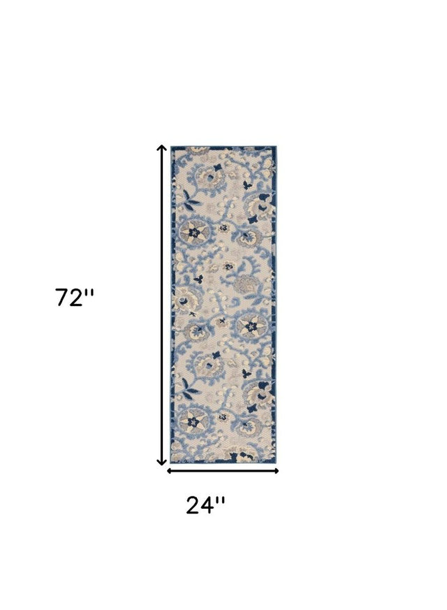 6' Blue And Gray Indoor Outdoor Runner Rug