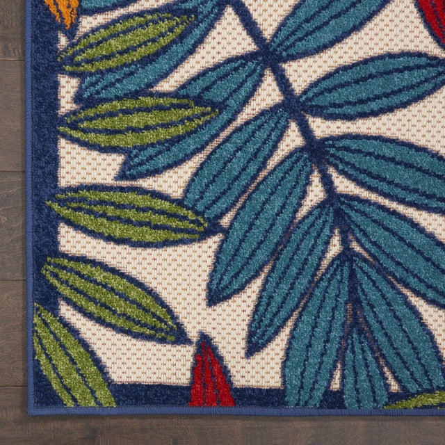 8' X 11' Ivory And Blue Floral Indoor Outdoor Area Rug - 2?x 6? Runner is backordered and will ship as soon as it is back in stock.