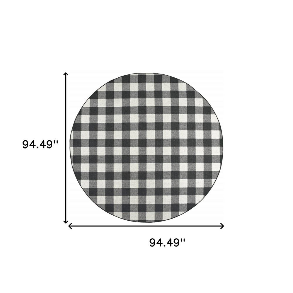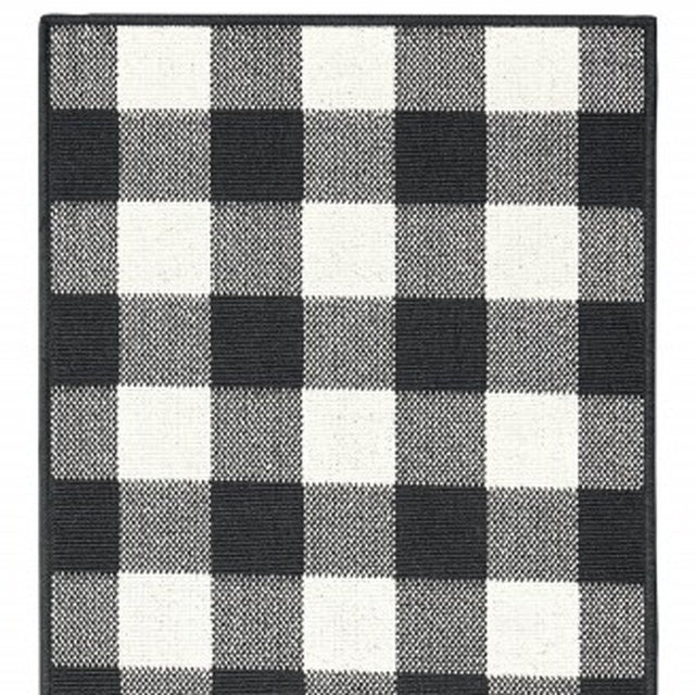 8' Black And Ivory Indoor Outdoor Runner Rug