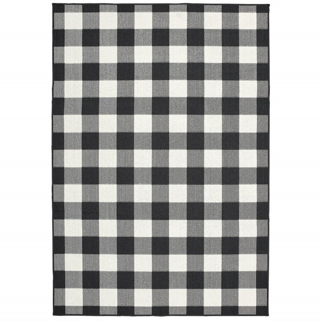 4' X 6' Black and Ivory Indoor Outdoor Area Rug