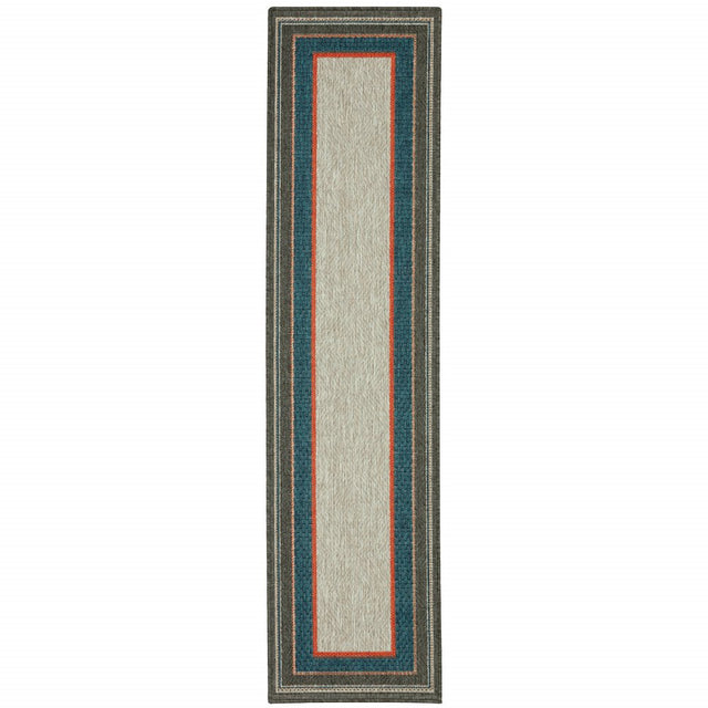 2' X 8' Blue and Gray Stain Resistant Indoor Outdoor Area Rug