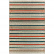8' Blue And Gray Striped Indoor Outdoor Area Rug - 5' x 7' is backordered and will ship as soon as it is back in stock.