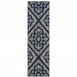 2' X 8' Blue and Ivory Geometric Stain Resistant Indoor Outdoor Area Rug