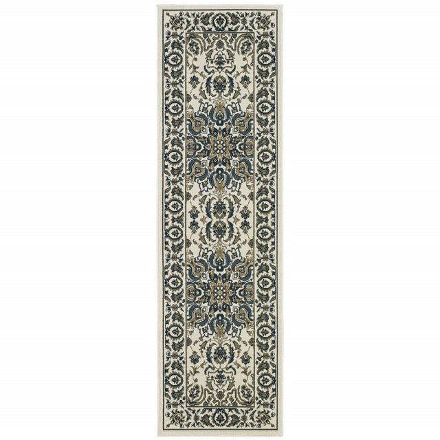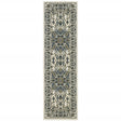 2' X 8' Ivory and Blue Oriental Stain Resistant Indoor Outdoor Area Rug