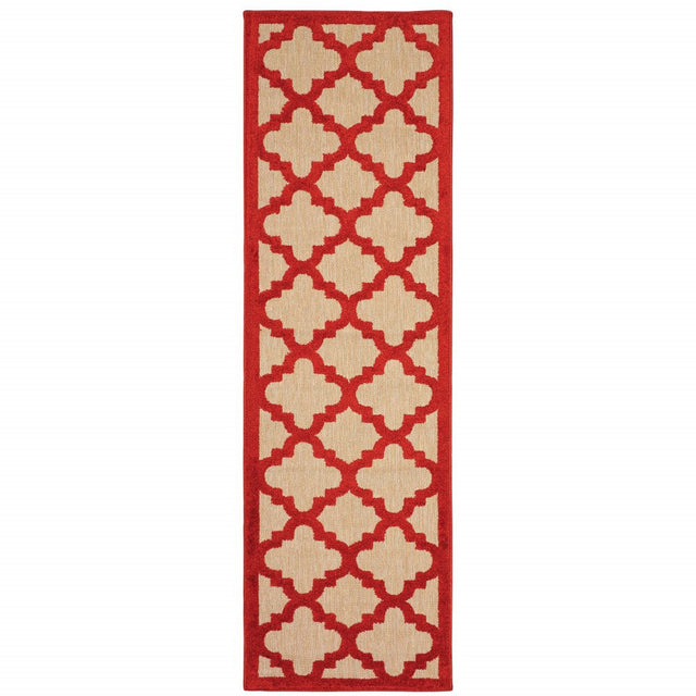 2' X 8' Red Geometric Stain Resistant Indoor Outdoor Area Rug