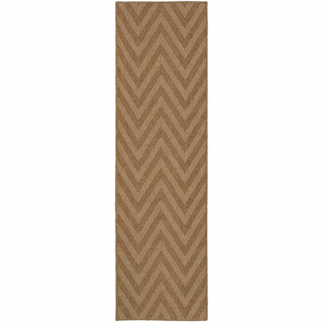2' X 8' Tan Geometric Stain Resistant Indoor Outdoor Area Rug