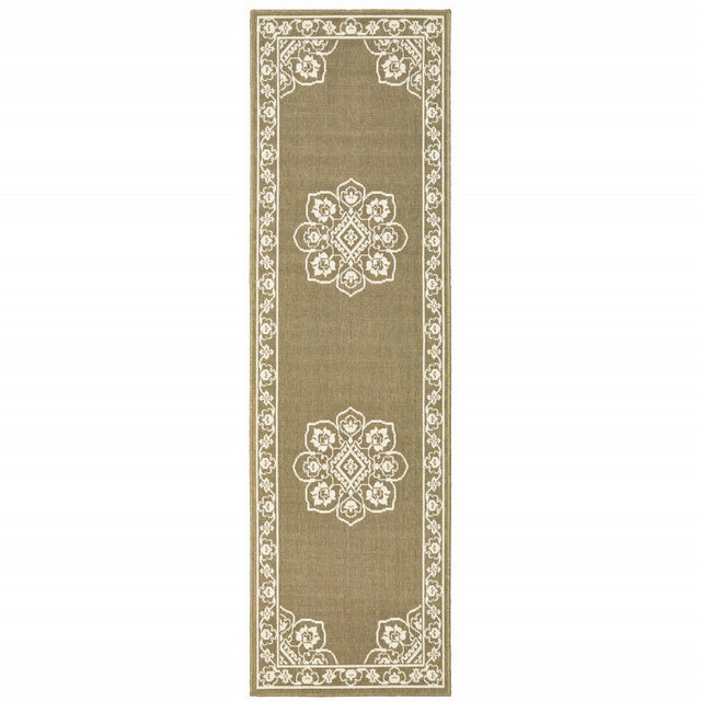 2' X 8' Tan Oriental Stain Resistant Indoor Outdoor Area Rug