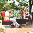 3 Pcs Patio Conversation Rattan Furniture Set with Glass Top Coffee Table and Cushions-Red