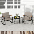 3 Piece Patio Rocking Bistro Set with Tempered Glass Coffee Table and Armrests for Porch-Brown