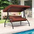 3-Piece Patio Swing with Canopy Removable Cushions and Side Pockets-Brown