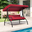 3-Piece Patio Swing with Canopy Removable Cushions and Side Pockets-Burgundy