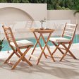 3 Pieces Acacia Wood Patio Bistro Set with Cushions-White