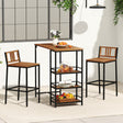 3 Pieces Outdoor Wood Bar Set with 3-Tier Storage Shelf and Metal Frame
