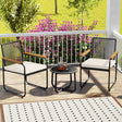 ● Built for Superior Stability: Supported by a robust metal frame  this rattan conversation set ensures enhanced longevity and stability. The adjustable foot pads adapt to uneven surfaces  further increasing overall steadiness.