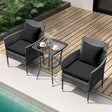 3 Pieces Patio Furniture Set with Cushioned Patio Chairs and Tempered Glass Coffee Table-Black