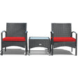 3 Pieces Patio Wicker Rattan Furniture Set with Cushion for Lawn Backyard-Red