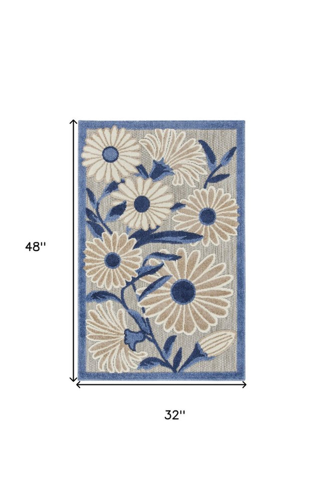 3' X 4' Blue and Gray Floral Indoor Outdoor Area Rug