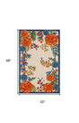 3' X 4' Ivory Orange and Blue Floral Indoor Outdoor Area Rug