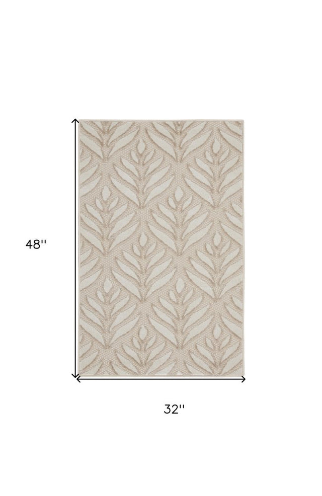 3' X 4' Gray and Ivory Floral Indoor Outdoor Area Rug