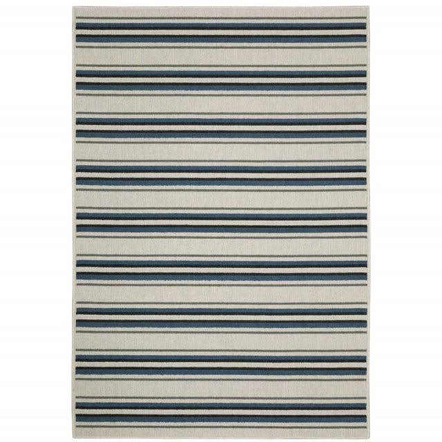3' X 5' Blue and Beige Geometric Stain Resistant Indoor Outdoor Area Rug