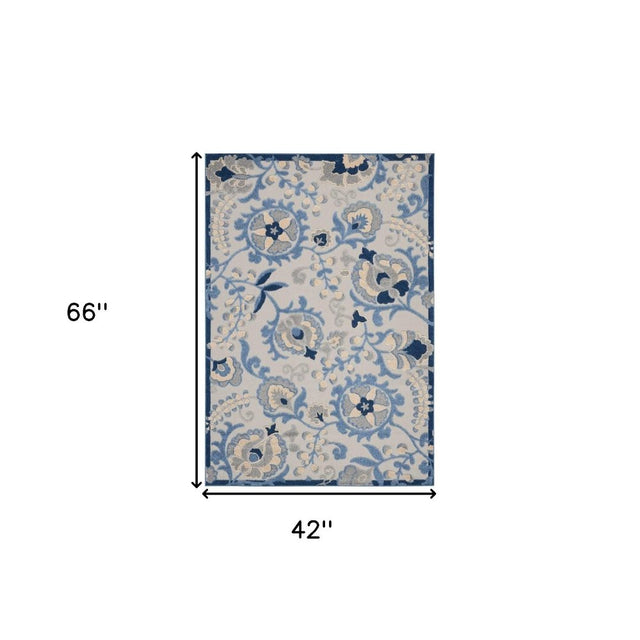 4' X 6' Blue And Gray Indoor Outdoor Area Rug
