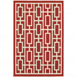 This 4-foot x 6-foot red and ivory geometric stain resistant indoor outdoor area rug, is a great way to add warmth to a room. This rectangle shaped rug features a geometric design in red and ivory to give it visual interest. A classic shape marries with good looking design for your space Ideal for spaces with kids and pets, this rug is stain resistant to help repel stains and spilled liquids. Place this area rug against a hardwood or tile floor and it will enliven your living space with style and sophistication. 0.15-inch H x 43.31-inch W x 66.93-inch D