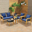 5 Piece Outdoor Conversation Set with 2 Coffee Tables for Backyard Poolside-Navy