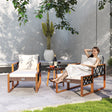 5 Pieces Patio Furniture Set PE Rattan Outdoor Conversation Set with Acacia Wood