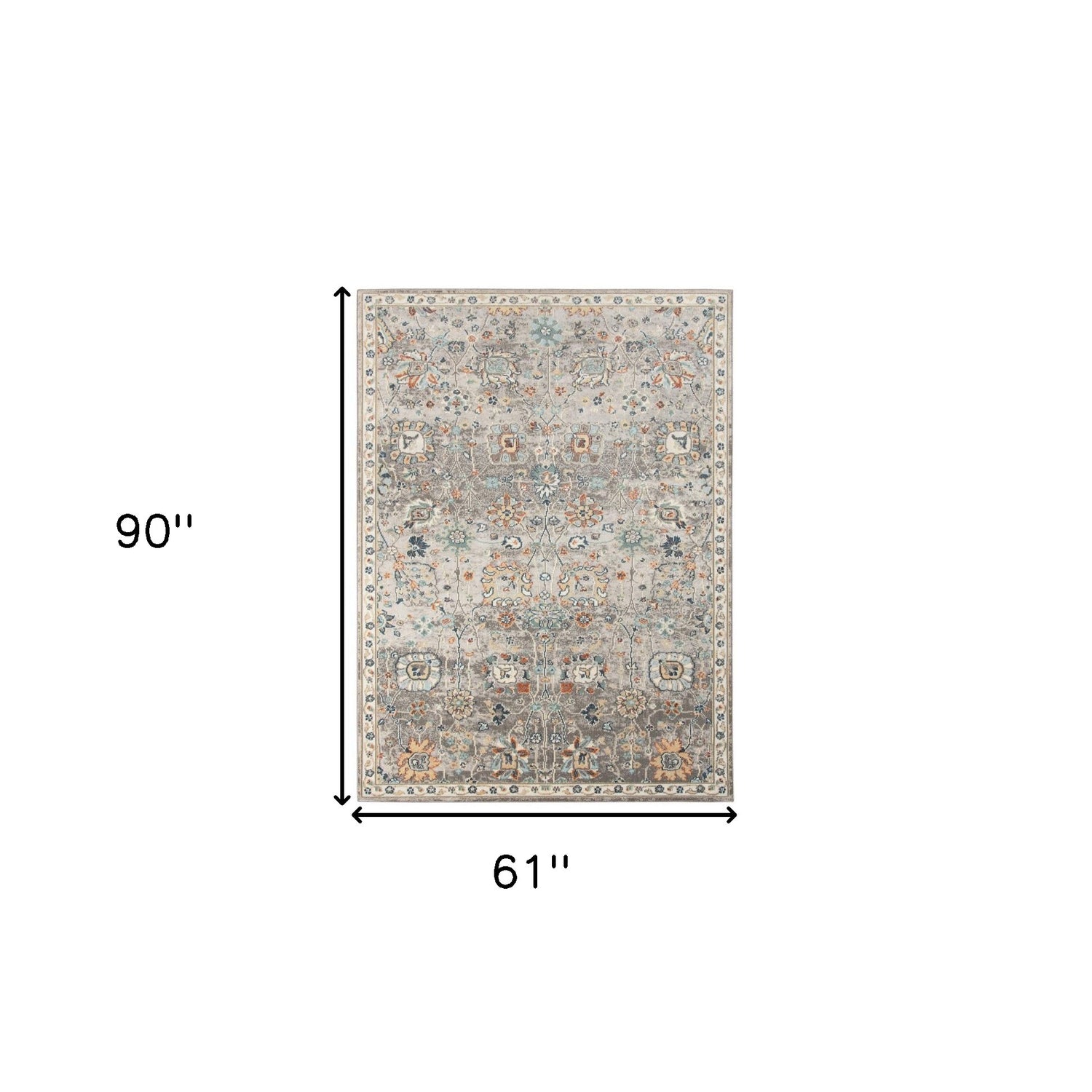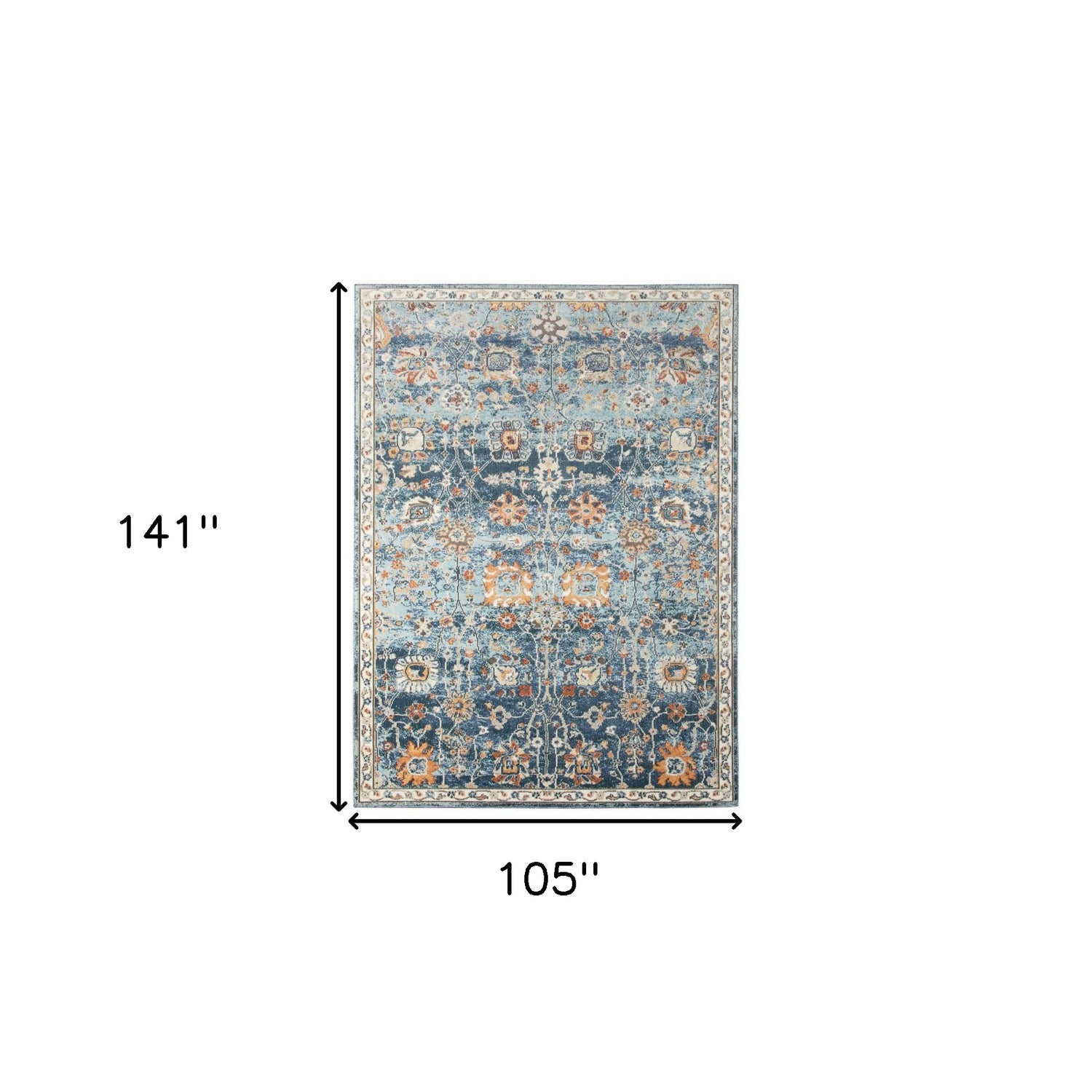 5' X 7' Blue and Orange Floral Stain Resistant Indoor Outdoor Area Rug
