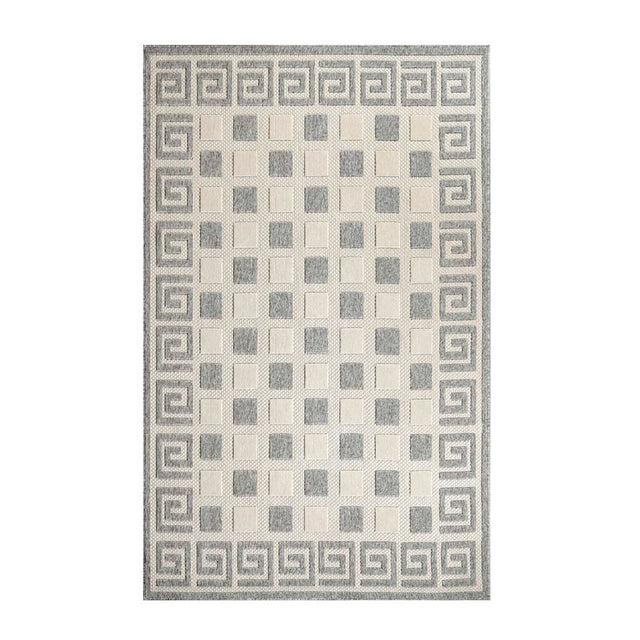 5' X 7' Cream Geometric Stain Resistant Non Skid Indoor Outdoor Area Rug