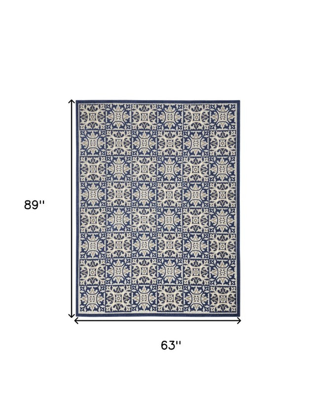 5' X 8' Blue Fleur De Lis Stain Resistant Non Skid Area Rug