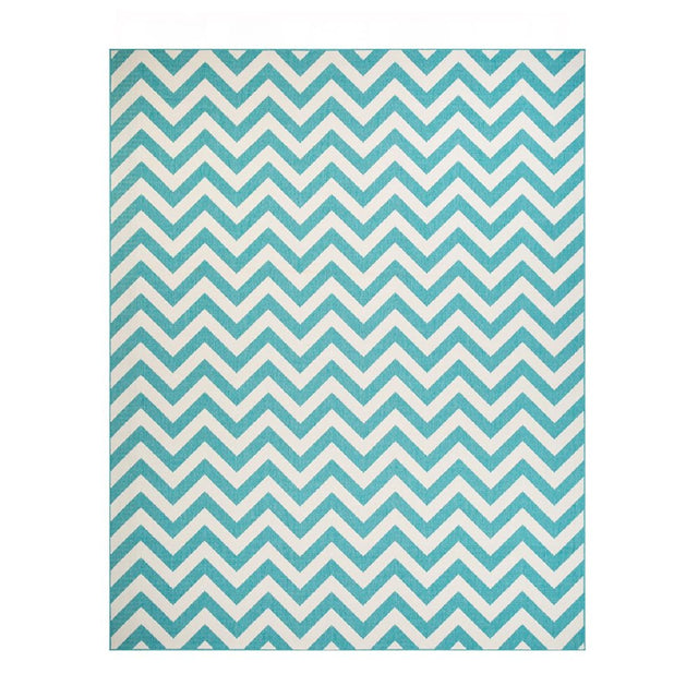 5' X 8' Blue-Green/Cream Chevron Stain Resistant Indoor Outdoor Area Rug