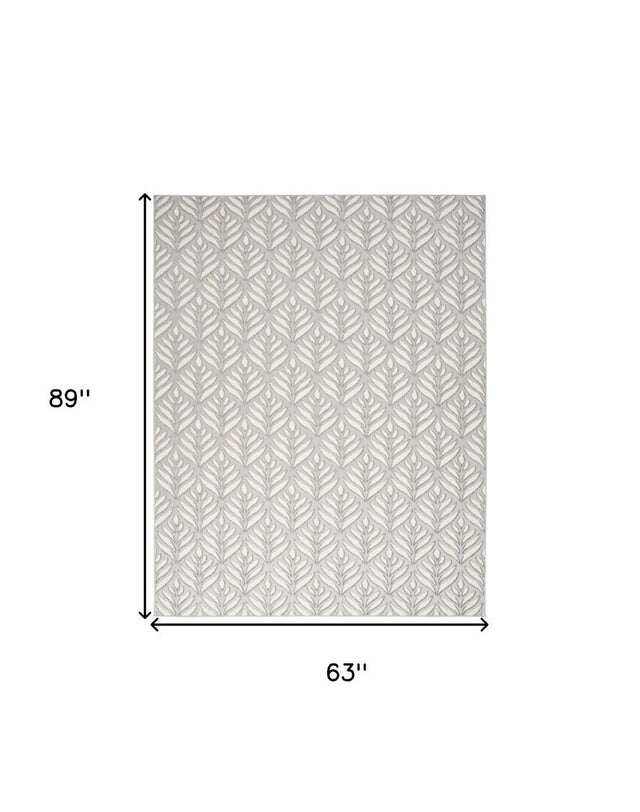 5' X 8' Grey Floral Stain Resistant Non Skid Area Rug