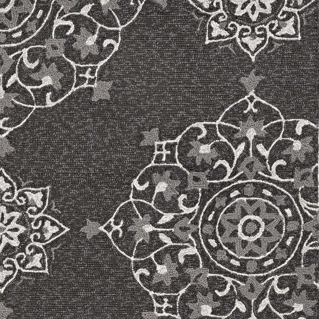 5' X 8' Charcoal Round Floral Indoor Outdoor Area Rug