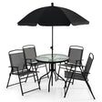6 Pieces Patio Dining Set Folding Chairs Glass Table Tilt Umbrella for Garden-Gray