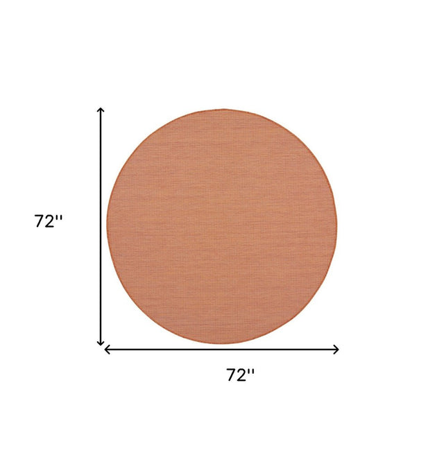 Add some artistry to your room with this 6-foot terracotta indoor outdoor area rug. This geometric round shaped rug features a solid color that combines hue and shape for a great look. Solid colors are versatile and will blend with any existing decor style. Versatile in use, durable, and easy to maintain, this rug is an ideal solution to add a decorative and inviting touch to your indoor or outdoor space. 72-inch h x 72-inch w x 0.25-inch d.