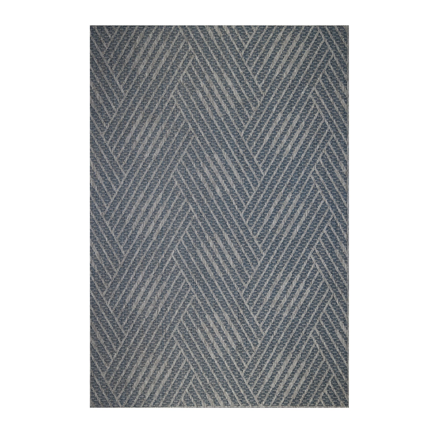 6' X 9' Gray and Blue Geometric Stain Resistant Indoor Outdoor Area Rug - Blue / 6'6" x 9'10" is backordered and will ship as soon as it is back in stock.