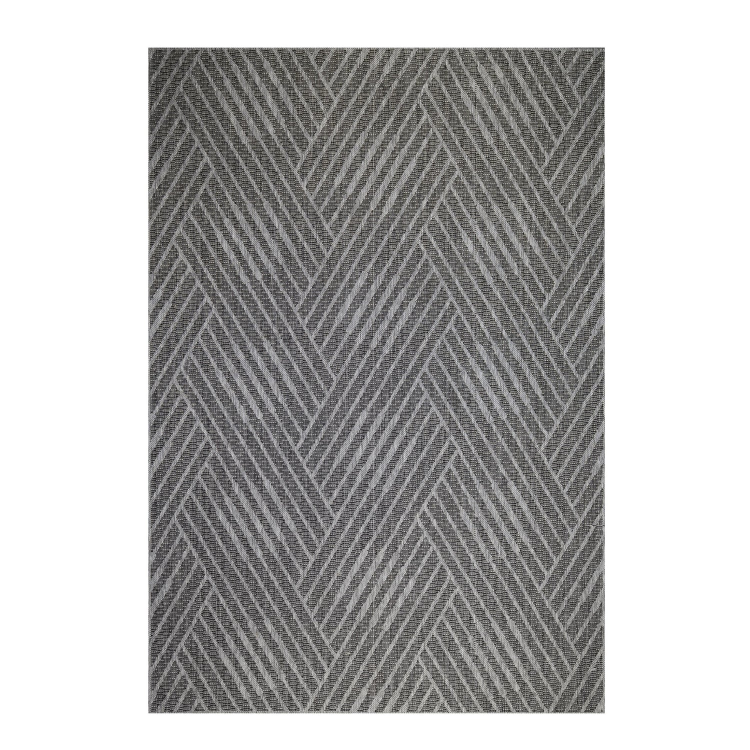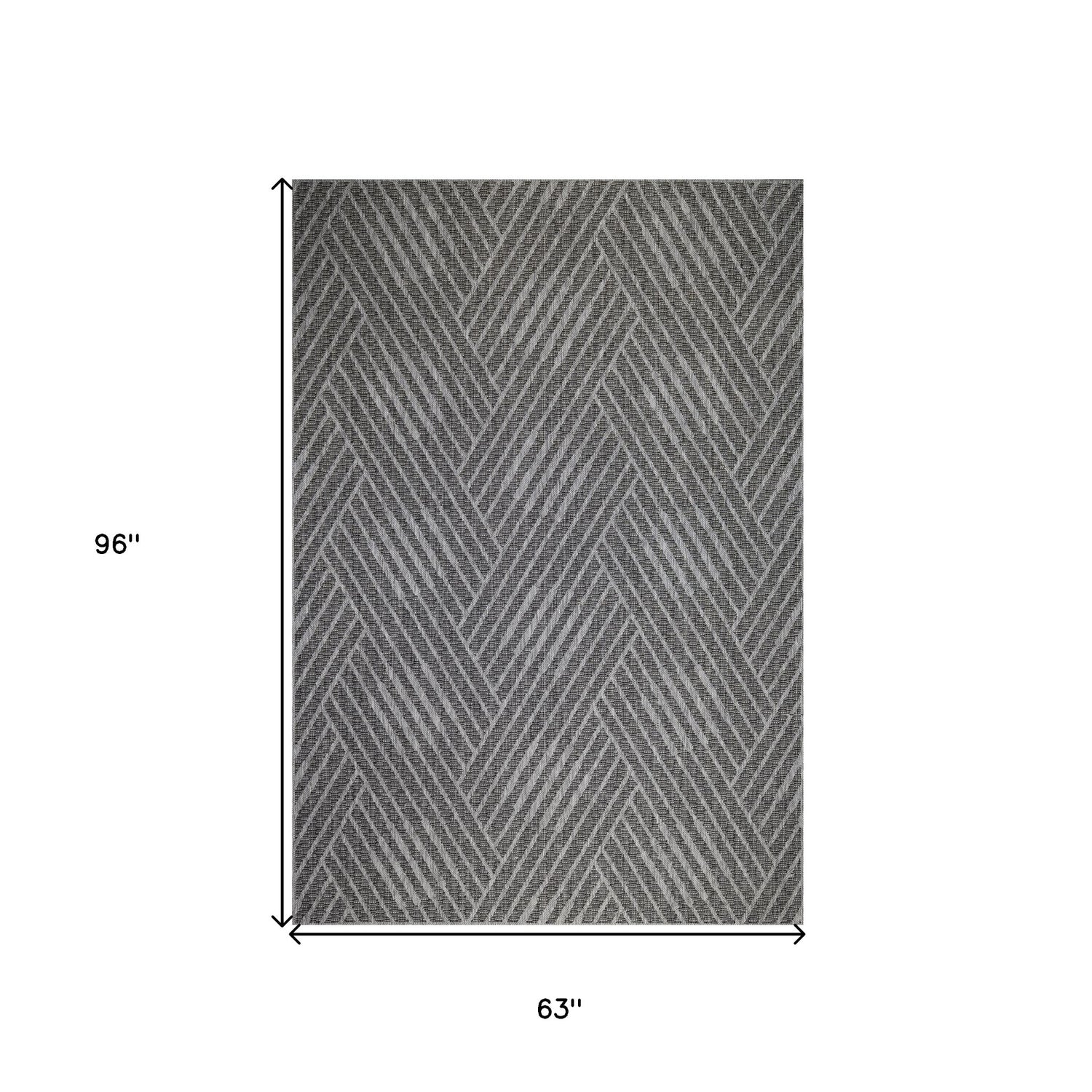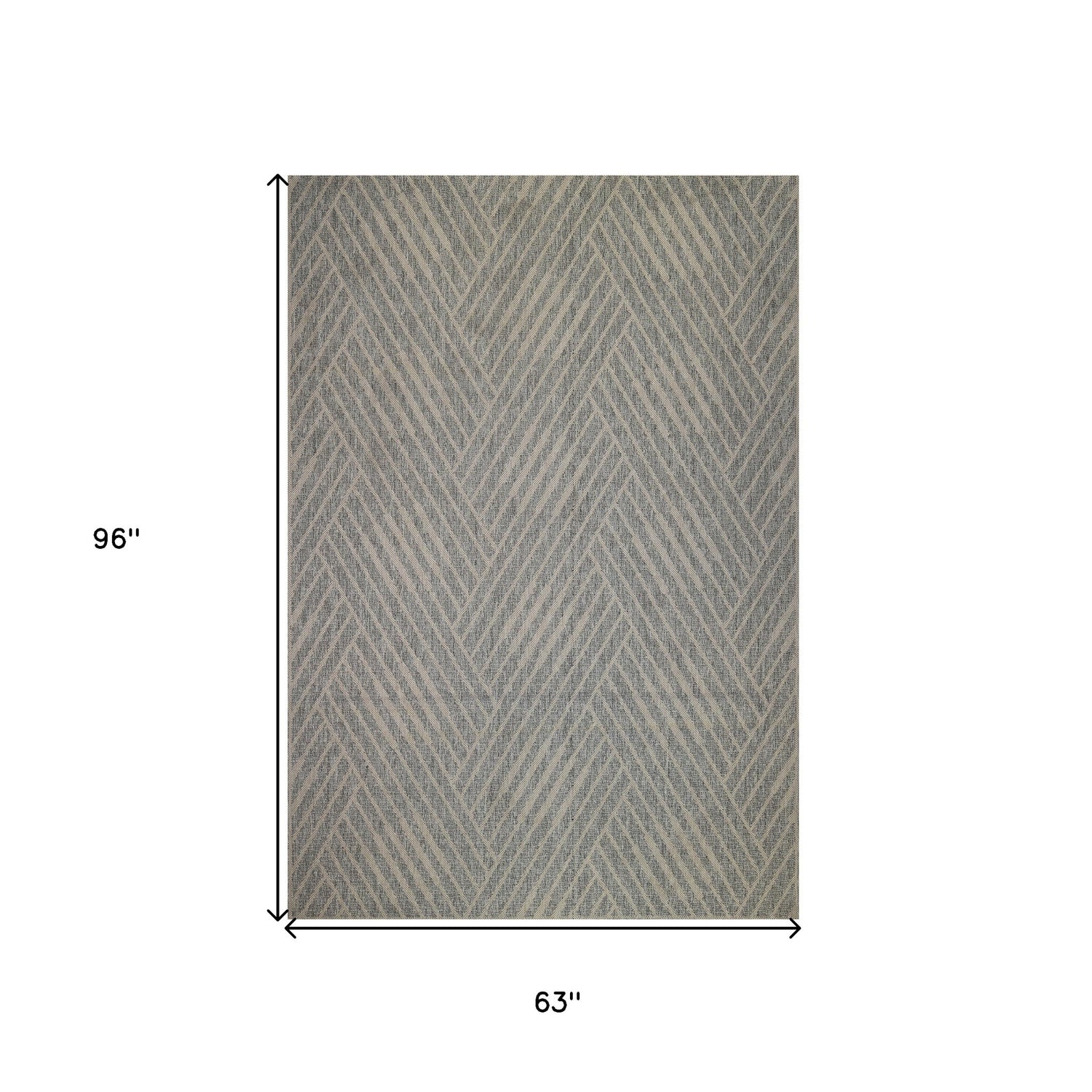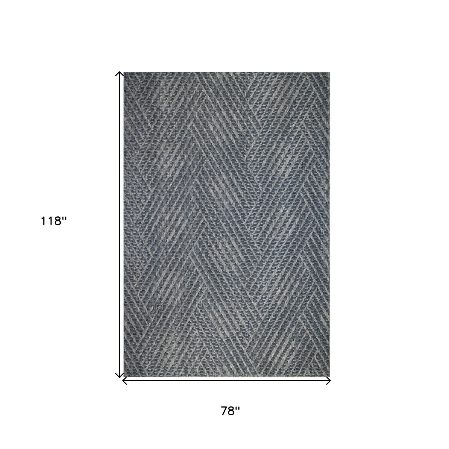 6' X 9' Gray and Blue Geometric Stain Resistant Indoor Outdoor Area Rug