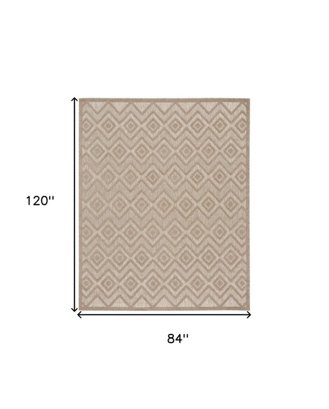 Set an inviting tone in your space with this 7-foot x 10-foot beige indoor outdoor area rug. Makes a great way to dress up your patio, porch, or poolside, but also works well as a durable and easy to maintain option in the kitchen, family room, or mudroom. Crafted with precision through machine-made construction, this rectangle-shaped rug offers an elegant touch while ensuring long-lasting performance. The versatile beige color seamlessly complements various design styles and enhances your outdoor allure. 84-inch h x 120-inch w x 0.3-inch d.