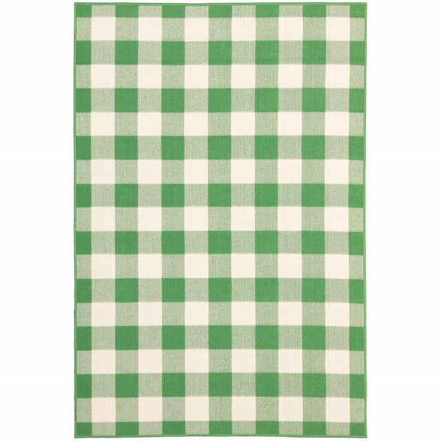 7' X 10' Green and Ivory Geometric Stain Resistant Indoor Outdoor Area Rug