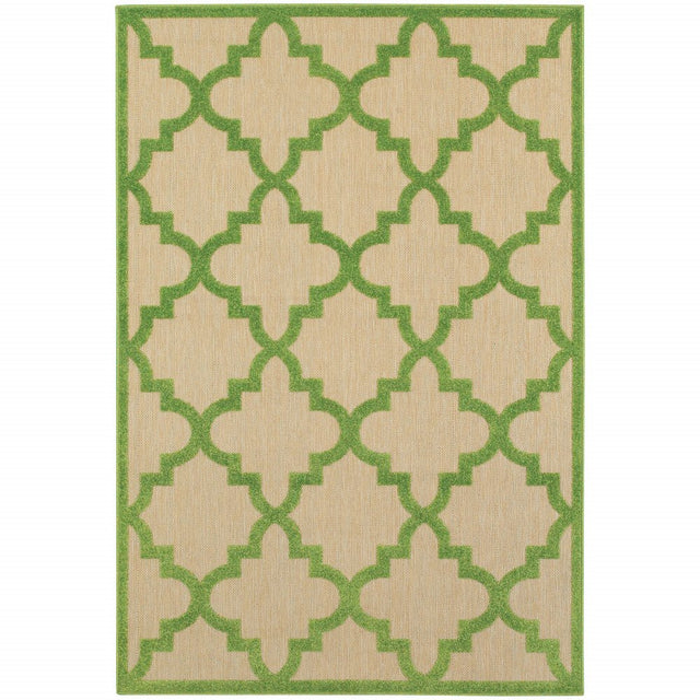 7' X 10' Green Geometric Stain Resistant Indoor Outdoor Area Rug