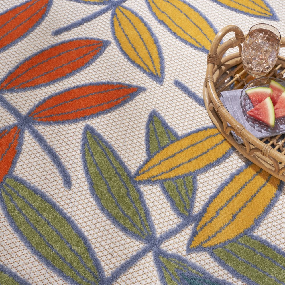 Add great coloration and comfortable texture to your space with this 7-foot x 10-foot ivory and blue indoor outdoor area rug. Makes a great way to dress up your patio, porch, or poolside, but also works well as a durable and easy to maintain option in the kitchen, family room, or mudroom. Crafted through machine-made construction, this rectangle-shaped rug offers both style and functionality for various settings, ensuring longevity while enhancing your outdoor decor. 84-inch h x 120-inch w x 0.25-inch d.