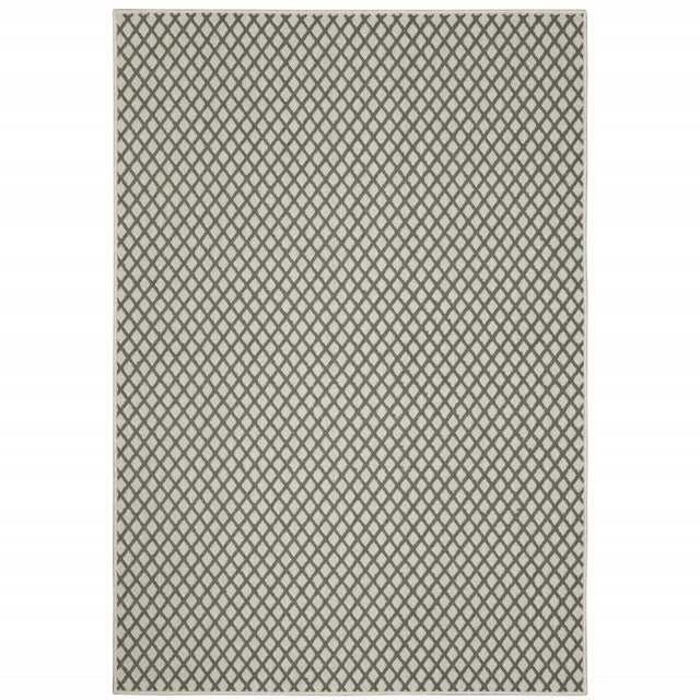 7' X 9' Beige Geometric Stain Resistant Indoor Outdoor Area Rug