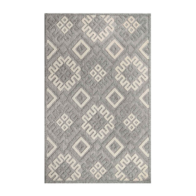 7' X 9' Grey Geometric Stain Resistant Non Skid Indoor Outdoor Area Rug