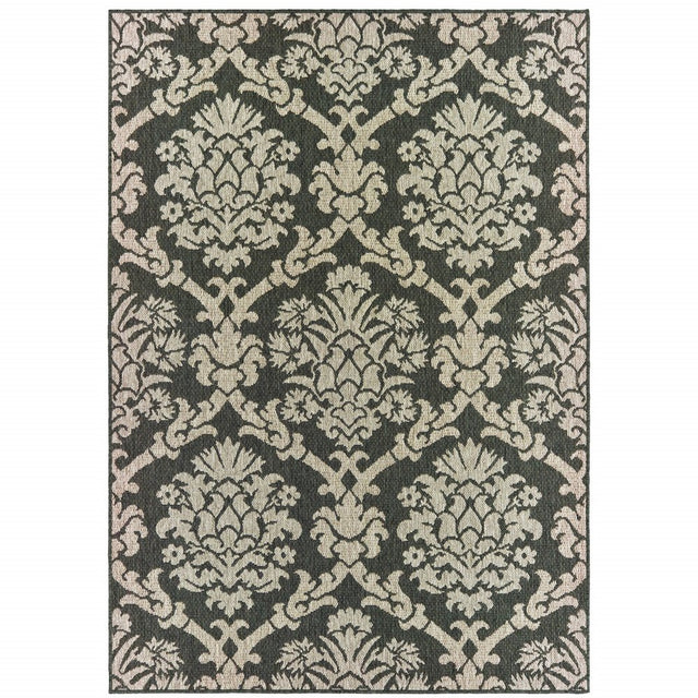 8' X 10' Gray Floral Stain Resistant Indoor Outdoor Area Rug