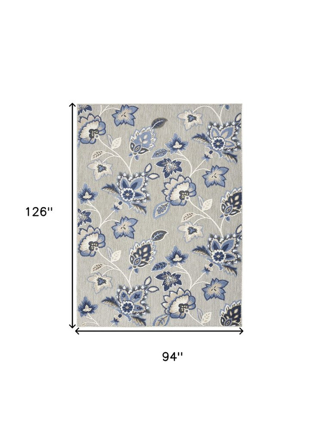 8' X 11' Blue and Gray Floral Non Skid Indoor Outdoor Area Rug