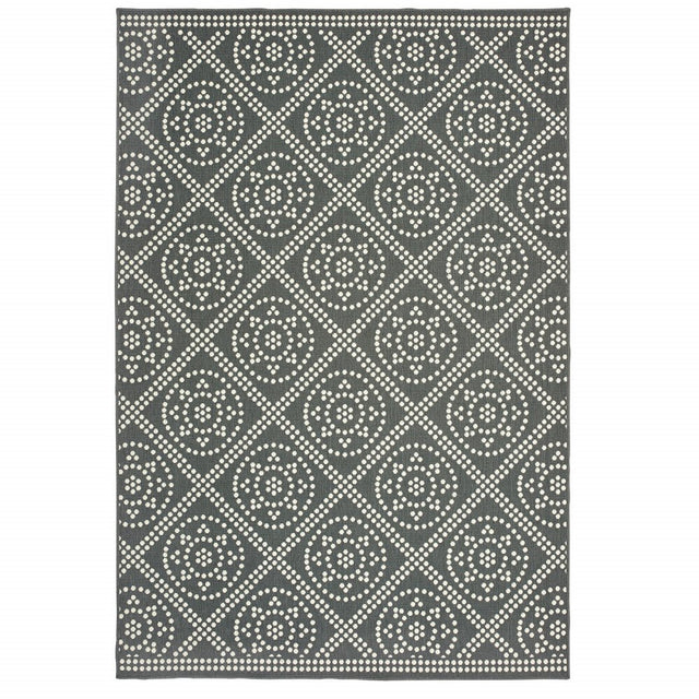 8' X 11' Gray and Ivory Geometric Stain Resistant Indoor Outdoor Area Rug